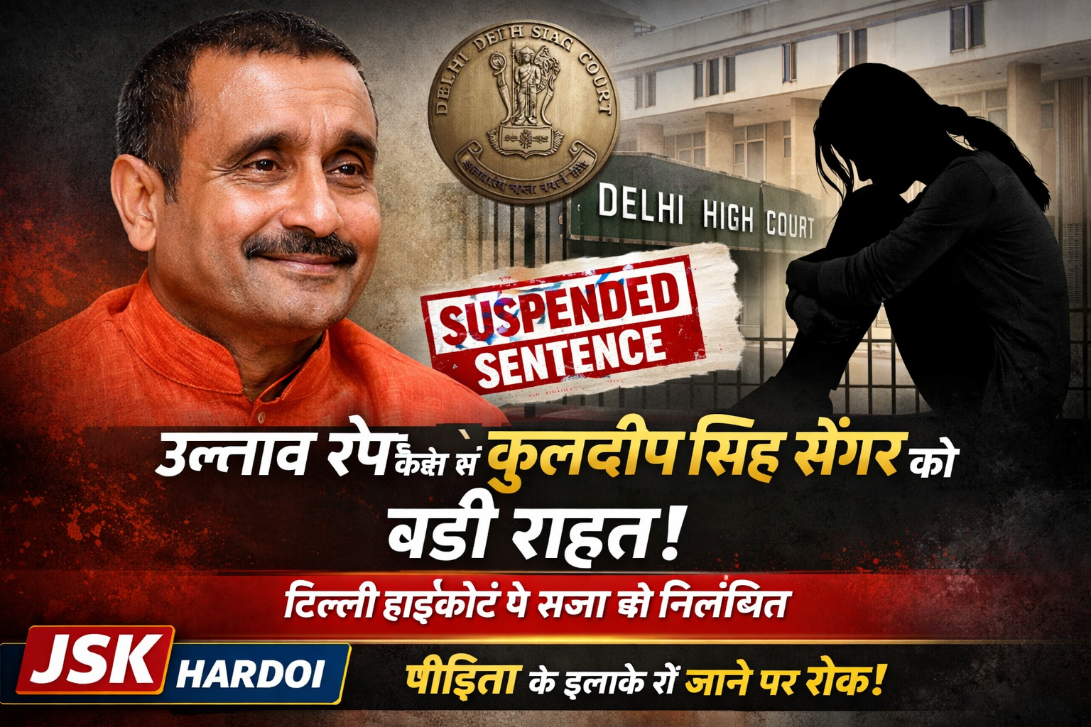 दिल्ली हाईकोर्ट से कुलदीप सिंह सेंगर को बड़ी राहत, उन्नाव रेप मामले में सज़ा निलंबित | JSK Hardoi News